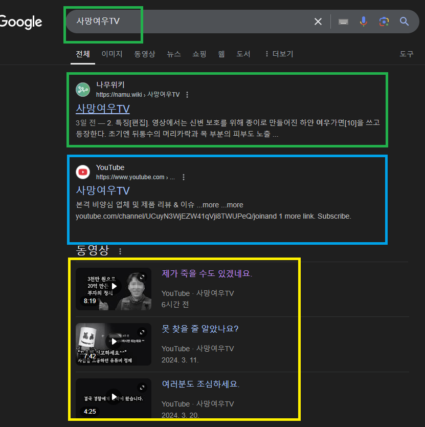 댓글 창에 사기고발 채널 사망여우TV에 대해 알게 되다